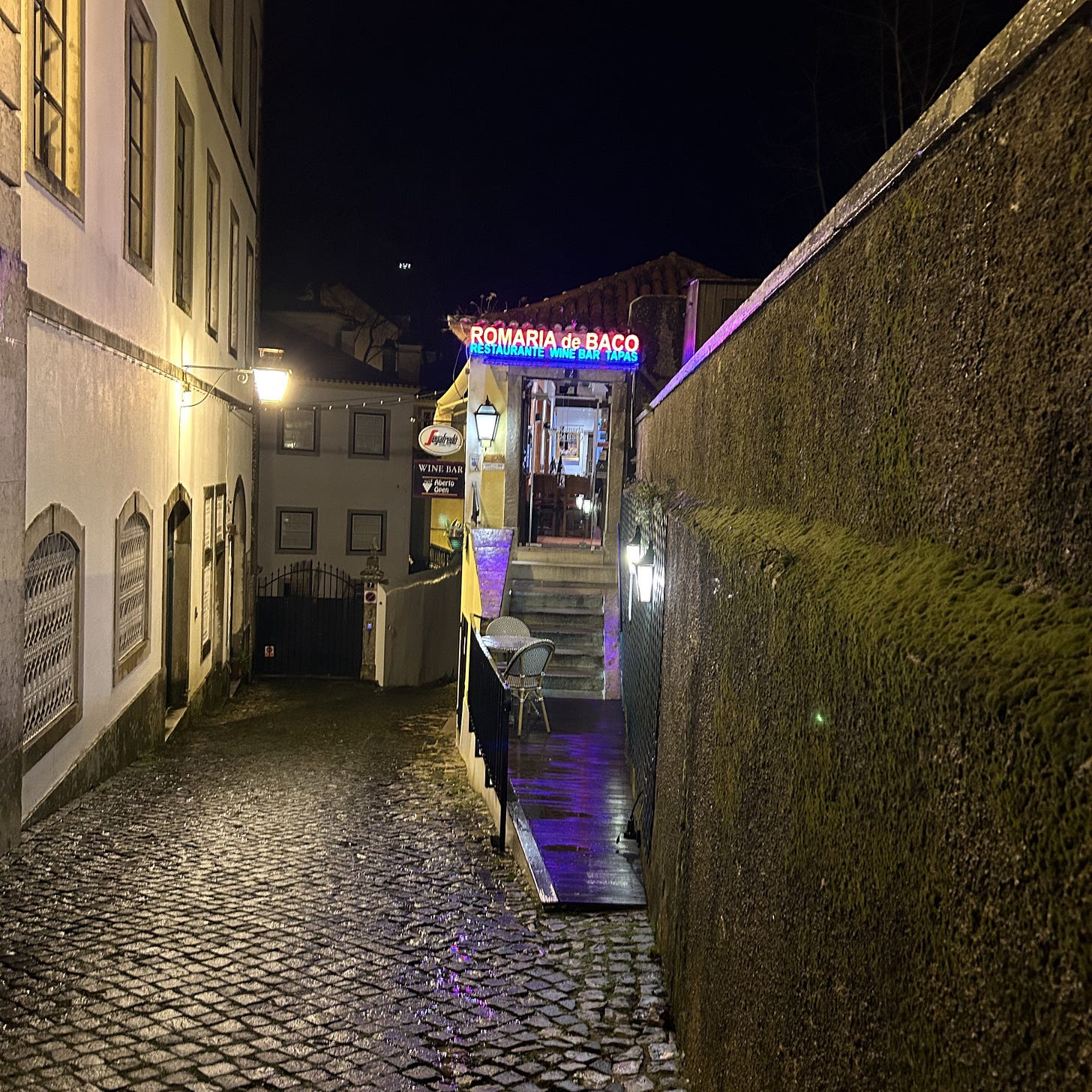 On my walk tonight, I noticed a few things I haven’t seen before. Maybe because I was being more aware. Maybe because I looked up and not down at my feet like I so often do. In the distance, castles were lit up and looked ominous in the foggy sky. I saw a sign that said “Capital do Romantismo” meaning, Sintra is the romance capital of Portugal, and though I’m not feeling rather romantic now (in fact quite the opposite, I feel very isolated and alone), I had to remind myself where I was. To look at things a bit more romantically. To appreciate all the work it took to get to Europe, even if this is not my place yet. For now, it’s a soft place to land, and soon spring will arrive and so too the sun, and I will dust myself off and go back out and explore corners that could potentially feel like home.