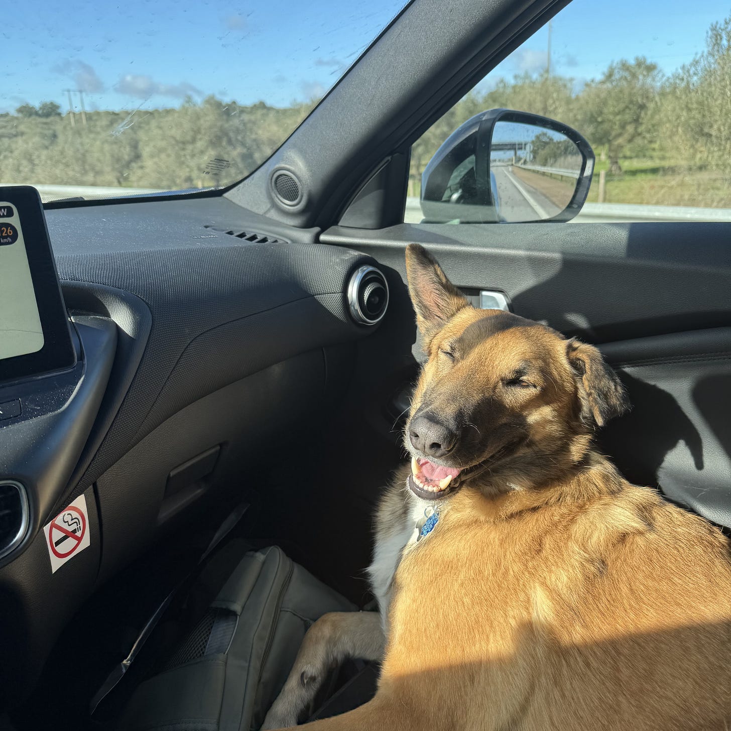 Kevin picked us up in a rental car and we drove about six hours to Lisbon, both of us practically hallucinating from lack of sleep and stress and sickness. Shep is also terrible in the car. Panting, shedding, absolutely needing to be in the front like he’s steering the ship. So I curled up in the back seat next to my giant suitcase with barely a sliver of space, my knees tucked up to my chest and some awkward metal bar shoved into my back. I was so tired though that I didn’t even care and dozed off for a bit, after reminding Kevin to “drive safe” because if someone hit us from the back I’d be crunched in half. I fell asleep watching the clouds morph into weird shapes, probably fever-induced.